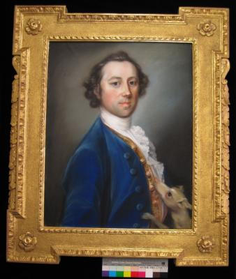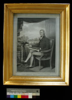 A stipple engraving of William Pitt, before on the left & after treatment on